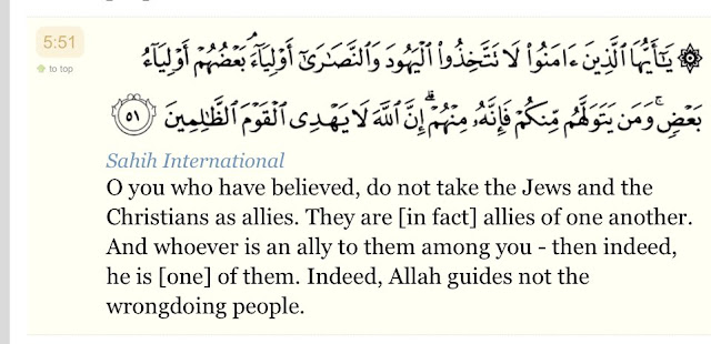 "You will surely find the most intense of the people in animosity toward the believers [to be] the Jews and those who associate others with Allah; and you will find the nearest of them in affection to the believers those who say, 'We are Christians.' That is because among them are priests and monks and because they are not arrogant."
